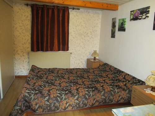 1 lit de 1,40m , deux chevets, un bureau, un placard .